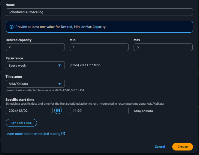 - ✅ Create scheduled autoscaling