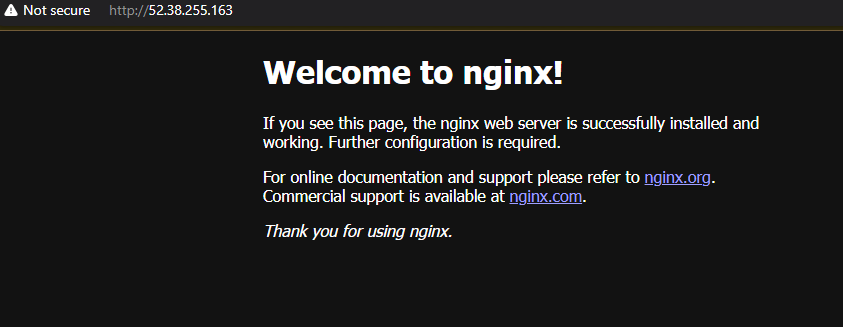 - ✅ Nginx page was successfully visible on root